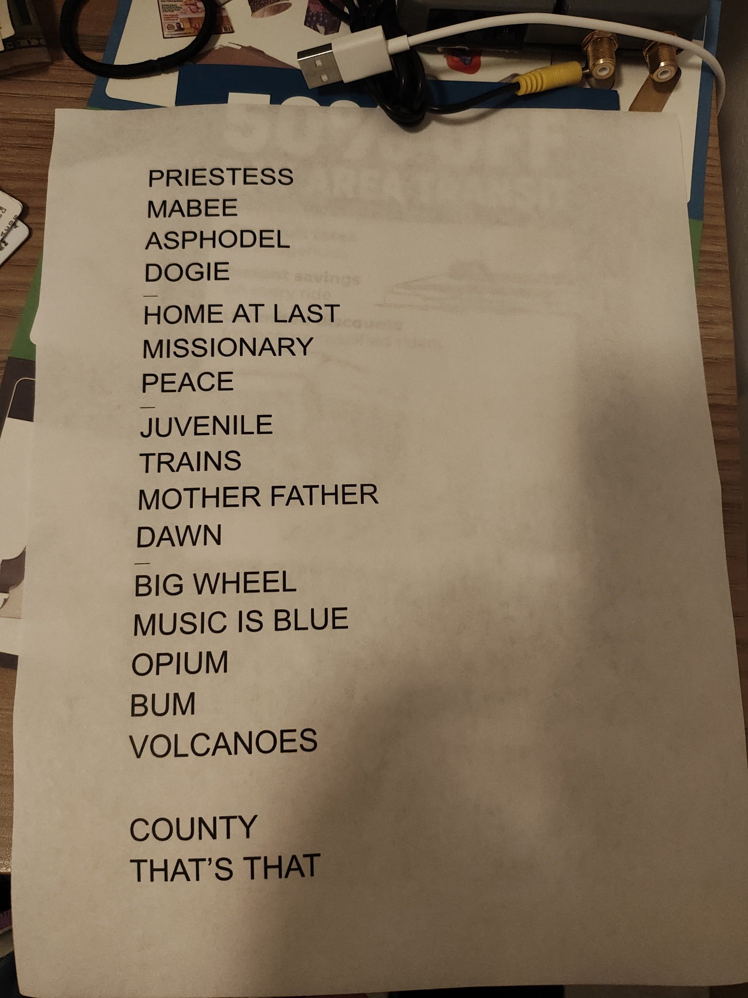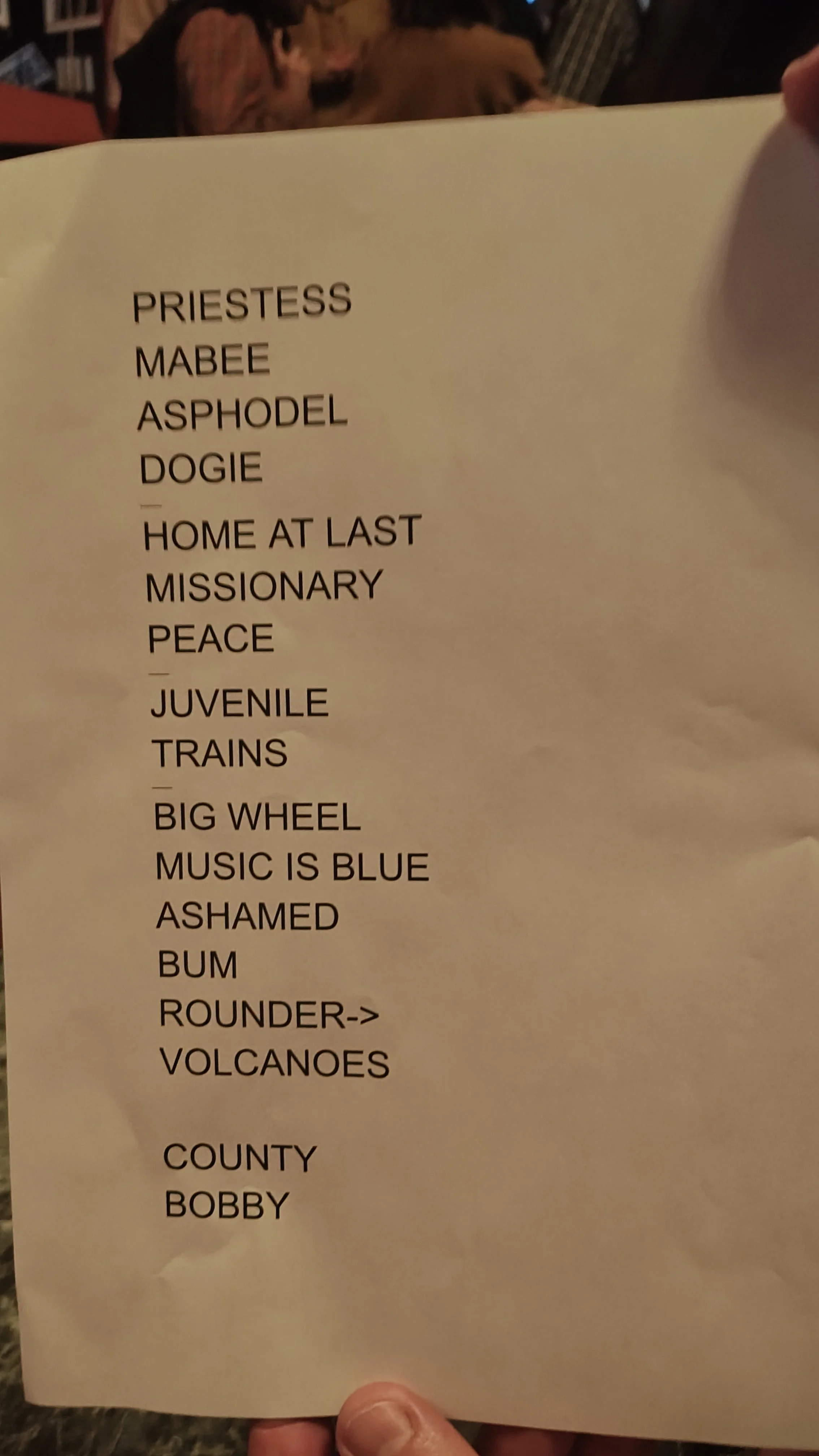 Setlist courtesy of Paddy Dale! Who got it from the drummer, Austin Vaughn. He waited patiently at the front of the stage long after the show concluded and finally asked, to which Austin responded “I guess” and handed it to him. It’s very cool to see Vaughn’s annotations for how to play each song.